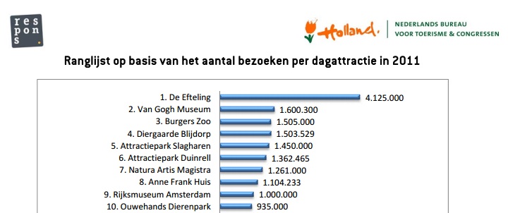 According to the Netherlands Board of Tourism and Conventions, Efteling was the most popular tourist attraction in the Netherlands in 2011, with a massive 4.1 million visitors. Other attractions on the list are the Heineken Experience at #26, the Van Gogh Museum at #2, and Anne Frank’s House at #8.