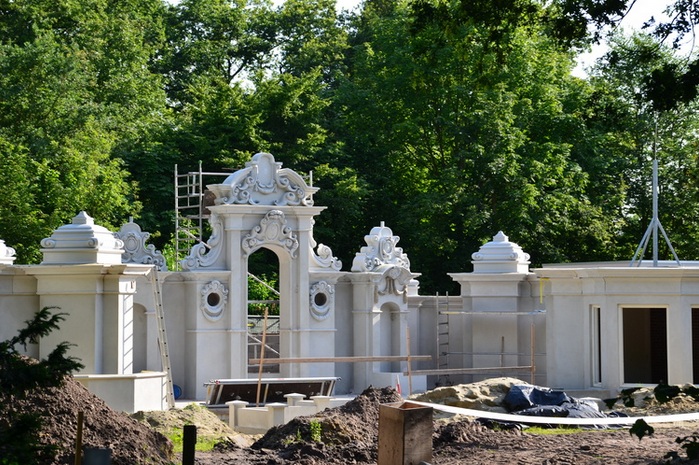 You may or may not know that the newest fairy tale to be constructed in the Fairy Tale Forest is the Emperor’s New Clothes. The construction has been ongoing for many months now, but things are starting to take shape. We can see the palace façade here: