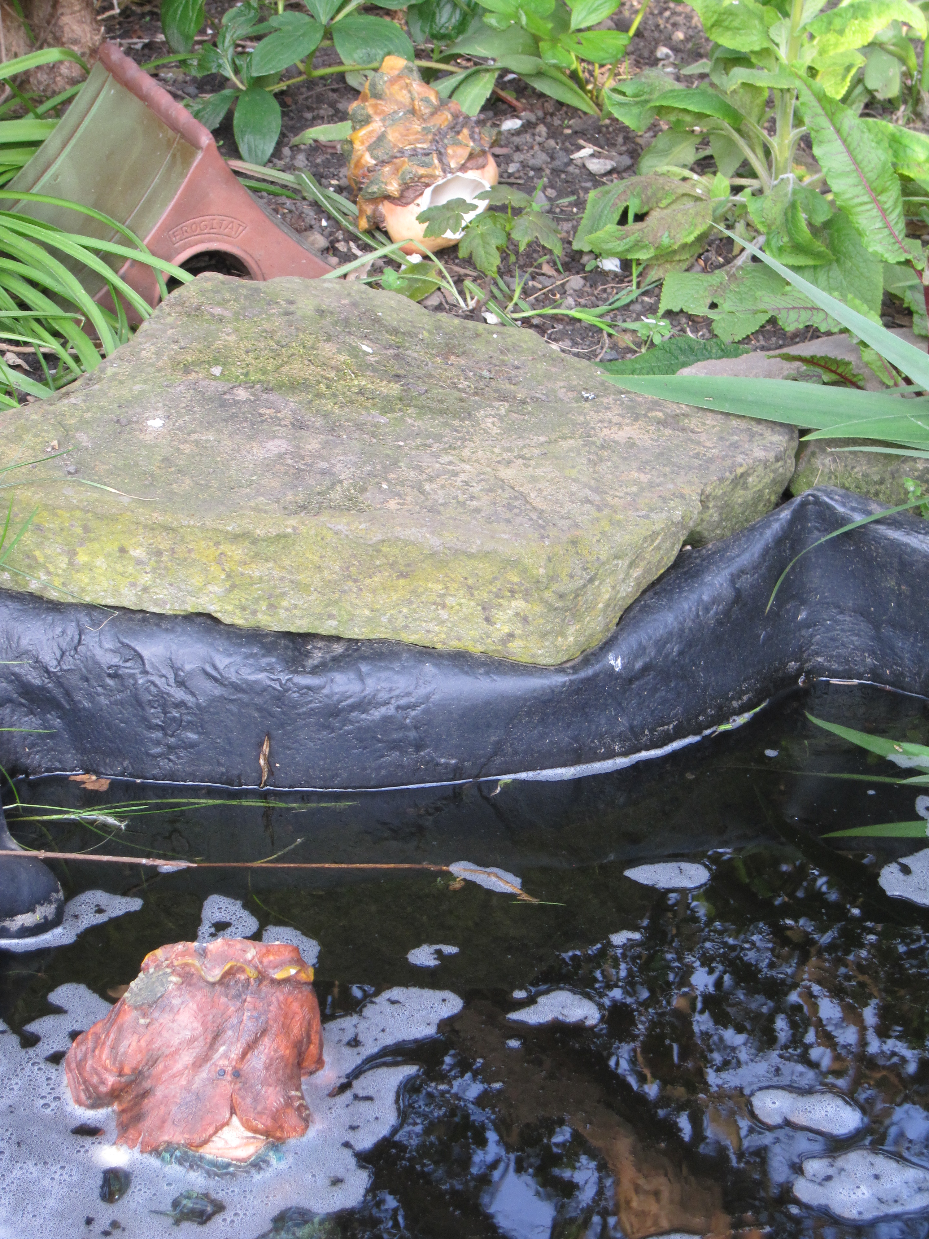 However, it happened again yesterday. Poor Loos was in the pond, and his head was on the grass. We’ve no idea how he managed it. Maybe he is trying to end it all! Hopefully not. Although, it is very strange that his little head didn’t fall in the pond with the rest of his body…And that he’d turned around before he fell in…Or maybe he was pushed?!