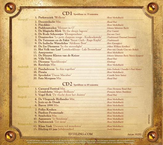 Another delightful piece of news (well I got excited about it!) is that there is a new Efteling CD available. New tracks include ‘welcome’ and ‘goodbye’, Efteling 65th anniversary (not sure how that one goes), and the music from Symbolica, which is a welcome addition. Add this one to the shopping list!