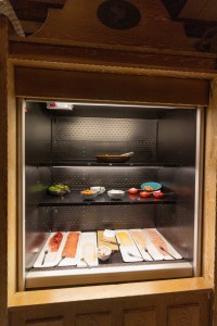 Under the TV in the cabinet you’ve got the mini fridge which is useful. We used it to store leftover salad that we had ordered. But I imagine in summer it would be great for cooling water bottles or sandwiches. Some people may need a cool place to store medicines or breast milk too so it’s a very useful feature.