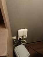 The one under the sideboard at the foot of the bed seemed the obvious choice but when we tried to plug it in the lead wouldn’t reach.