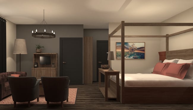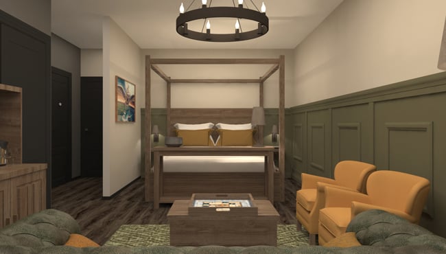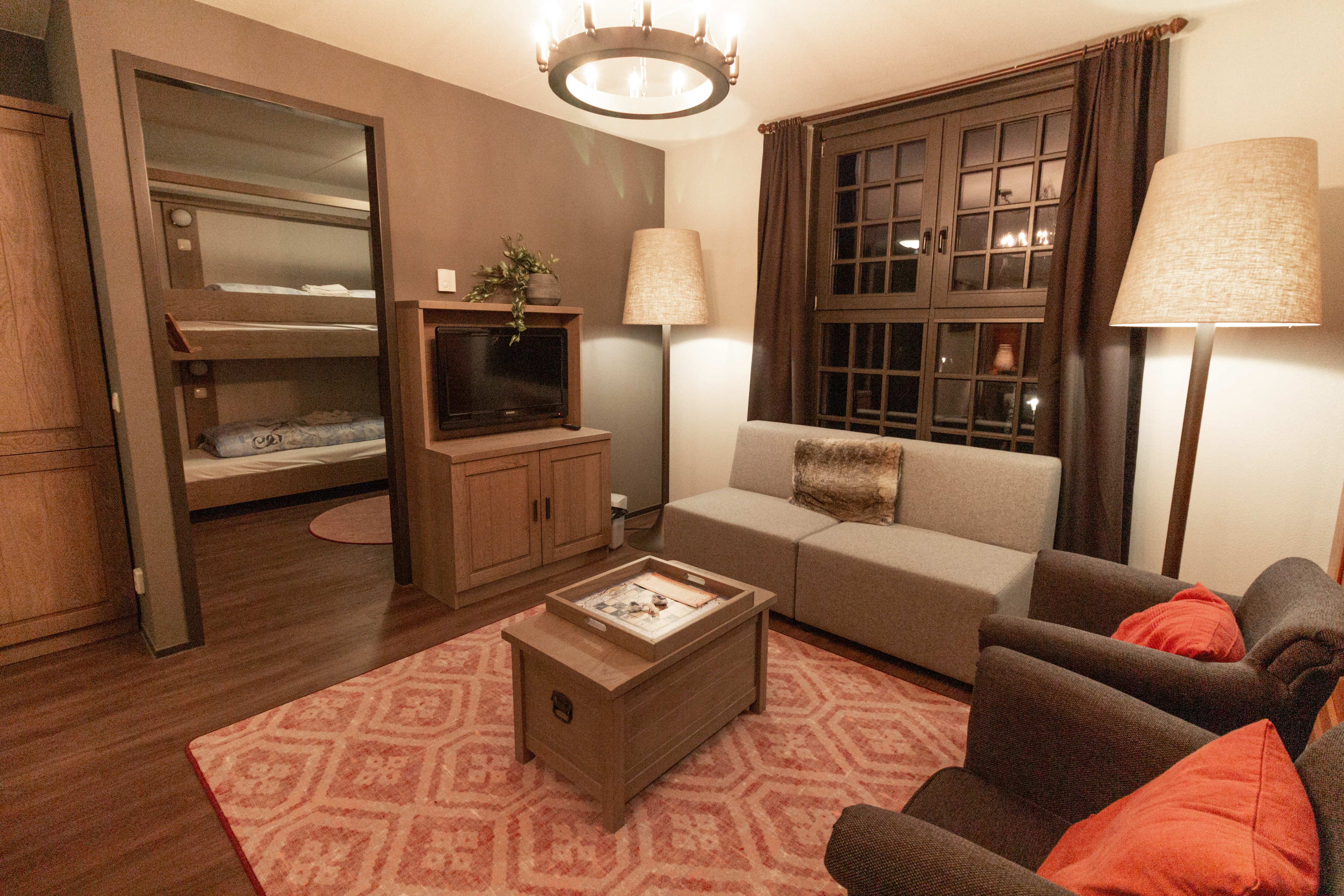 Our room – and I assume all of the standard family rooms – had a modern grey sofa rather than the leather sofa you see in the pictures. though I believe the VIP rooms do get the leather sofa you see in the designs https://youtu.be/VRx5WlbeVUQ?t=71
