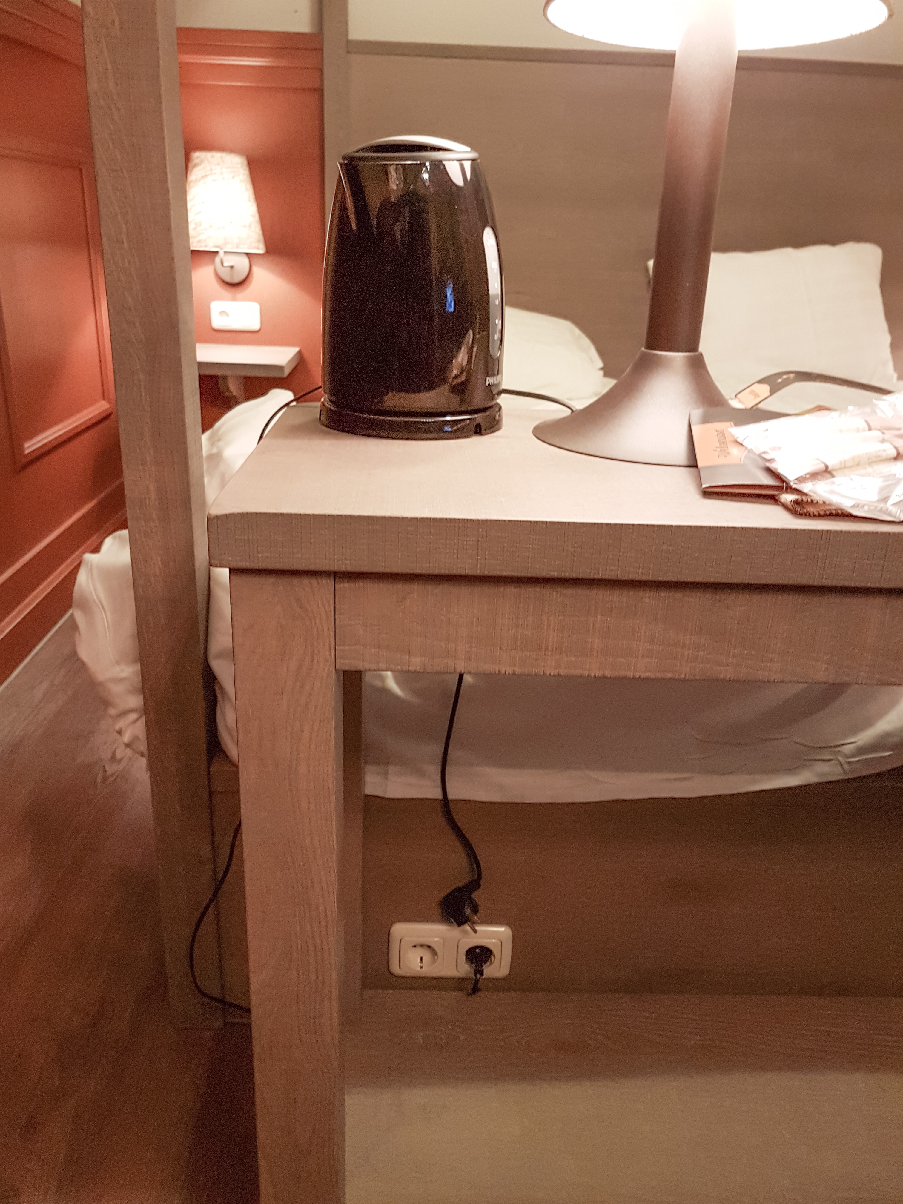 The one under the sideboard at the foot of the bed seemed the obvious choice but when we tried to plug it in the lead wouldn’t reach.