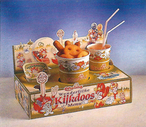Nineties fast food at it’s smiley-faced best, complete with toy and amazing take-out boxes, what child in their right mind could resist these beauties?! In fact, the first box won an award for design! I’m not ashamed to say that I still own my Kijkdoos box, it was just too pretty to throw in the trash. As well as the little Pardoes keyring which came with it. Of course, Efteling do still sell kids boxes, most recently being the Symbolica box that comes with a toy twinkle torch, and they’ve marginally improved it by adding a fruity dessert and a carton of juice or bottle of water.