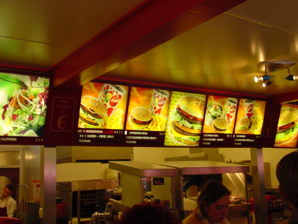 Of course, you could be easily fooled into believing that the image above is from any regular fast food place (just look at those perfectly formed burgers!) but it is actually from the Likkebaerd, which stood where you will now find Station de Oost. In comparison to what looks like a very limited menu here, Station de Oost sells items such as Turkish Pizza, Doner Kebab, Salads, Soups, Baguettes, Fruit, Chips, Yoghurts, Cakes, wall food and more! A massive improvement in choice, and the whole building itself is in fact a huge upgrade compared to the Likkebaerd.